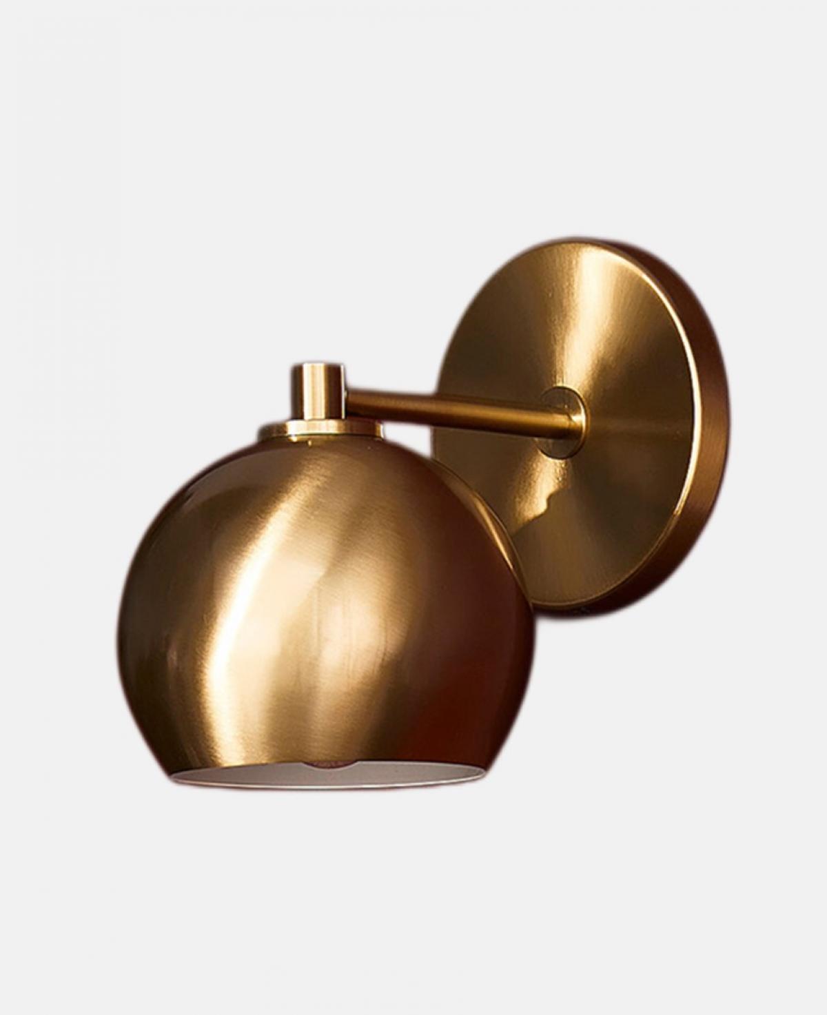 Fırçalanmış eskitme pirinç gövdesi ve aşağı bakan metal başlığıyla vintage bir karakter sergileyen bu aplik, baş ucu veya koridor aydınlatması için şık ve zamansız bir seçenektir.