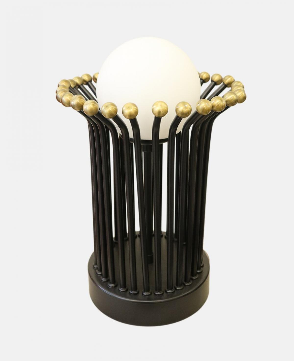 Yukarı doğru açılan siyah metal çubukların oluşturduğu kafes yapısı ve pirinç uç detaylarıyla sanatsal bir duruş sergiler. Merkezindeki opal cam küre sayesinde ışığı homojen bir şekilde yayarak mekanınıza dramatik ve modern bir hava katar.