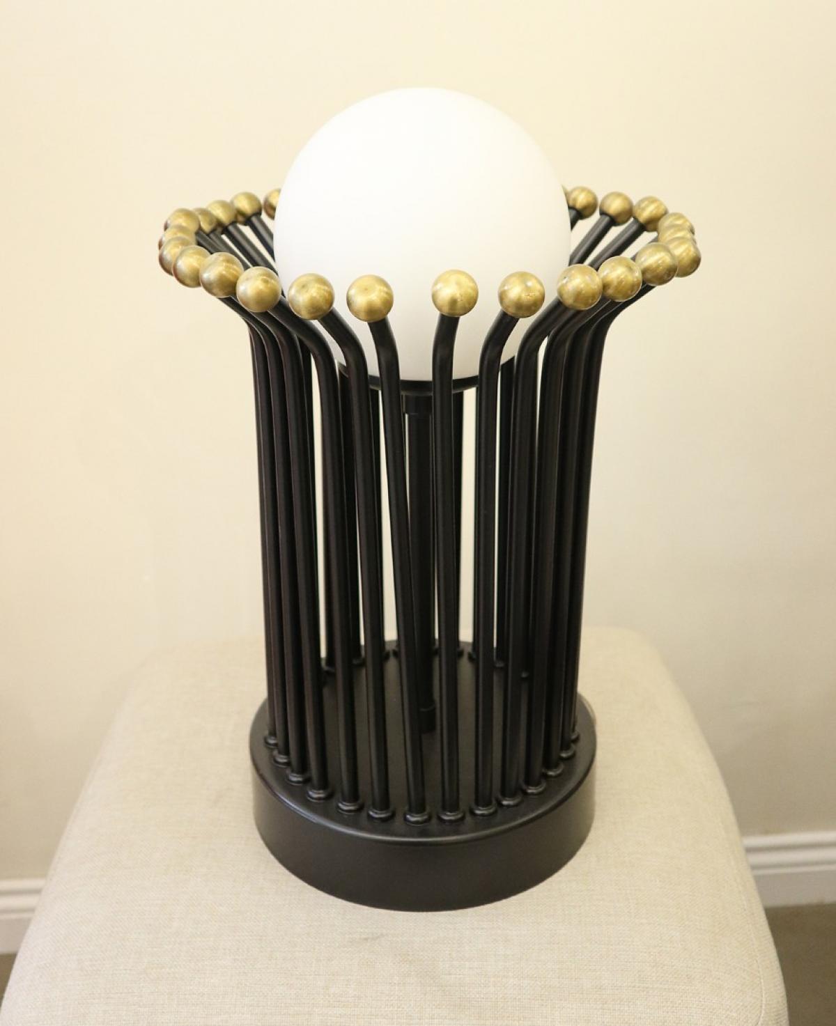 Siyah Metal Çubuklu ve Pirinç Detaylı Modern Küre Lamba
